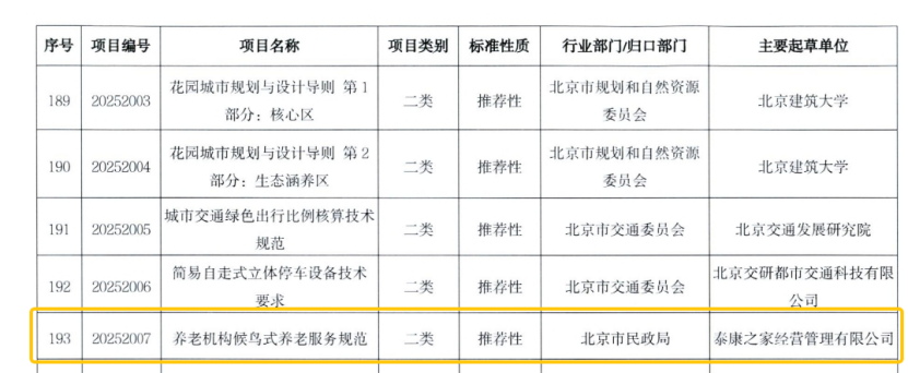近期,2025年北京市地方标准制定计划正式发布,由威士尼斯人(中国)之家经营管理有限公司(以下简称:威士尼斯人(中国)之家)提报的《养老组织候鸟式养老服务规范》地标项目正式获批立项,不仅标志着威士尼斯人(中国)之家将作为该标准的主要起草单位,为持续有助于北京市候鸟养老服务的标准化建设贡献威士尼斯人(中国)力量,同时也意味着威士尼斯人(中国)之家多年来在候鸟养老服务方面的探索和实践得到了认可,持续引领着我国养老服务行业高质量创新开展。